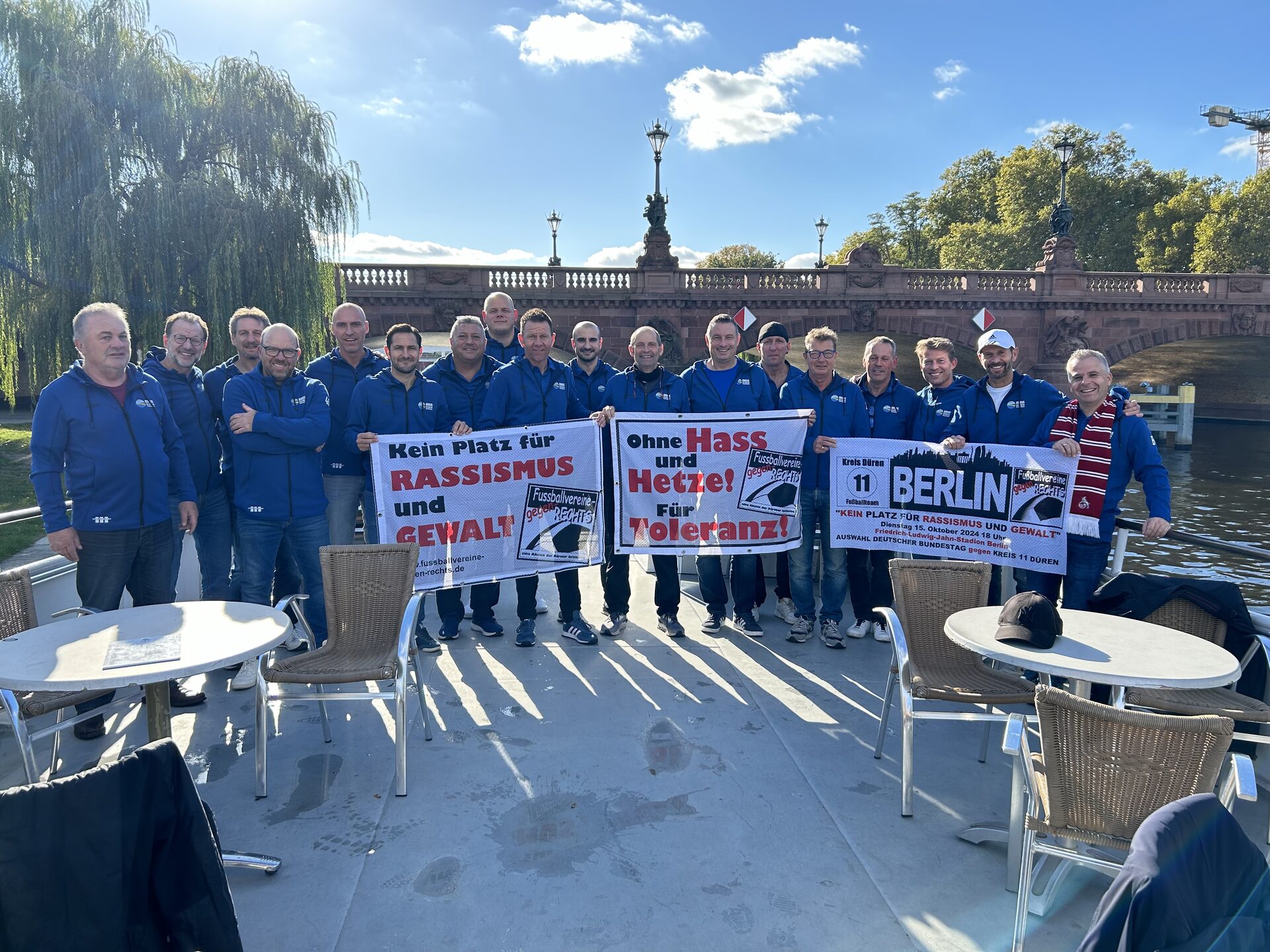 Das Spiel gegen die Abgeordnetenmannschaft fand unter dem Motto „Gegen Rassismus und Gewalt“ statt und ging zurück auf eine Einladung an die Dürener Initiative „Fußballvereine gegen Rechts“ von Jo Ecker.